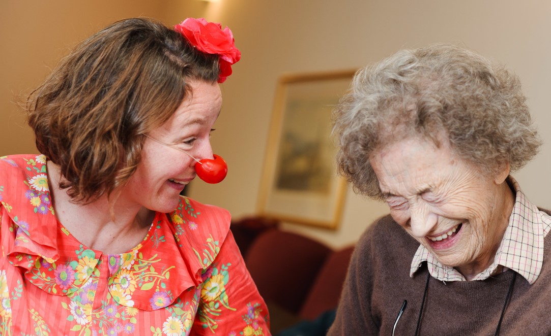 Therapeutic clowning sessions for vulnerable people living with dementia. Use music, singing, mime, or gentle slapstick to uplift and foster connections